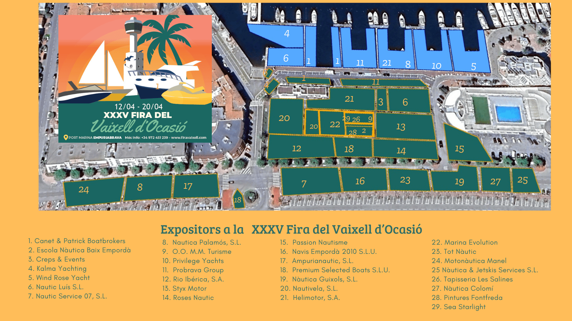 Enguany, el tipus d’embarcacions que es podrà visitar per a la venda en sec són embarcacions d’entre 4 ui 10 metres d’eslora, pneumàtiques grans i petites i també motos d’aigua.